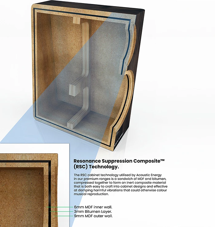 Neodymium se stalo u produktů Acoustic Energy nepostradatelným materiálem. Nyní jsou neodymiové měniče standartně osazovány i do základní řady. Ovšem nejen díky nim byly okamžitě po uvedení na trh katapultovány na čelní místa žebříčků odborných časopisů. Vnitřní kabeláž a součástky výhybek jsou z nejlepší jakostní kategorie…