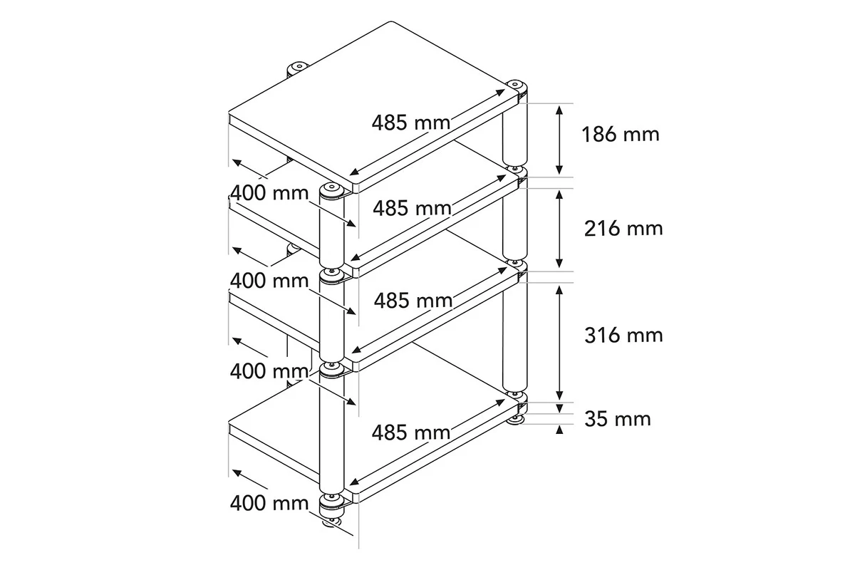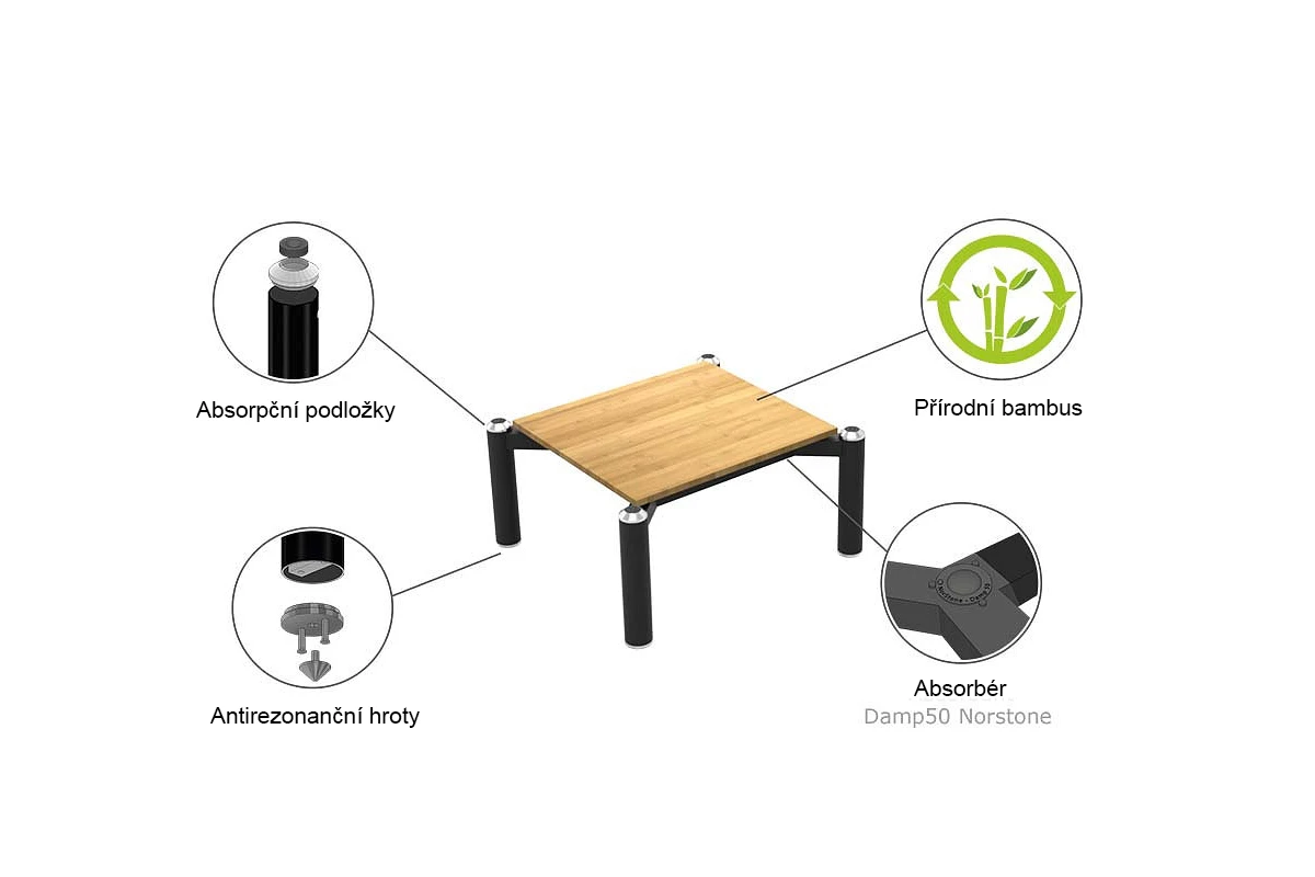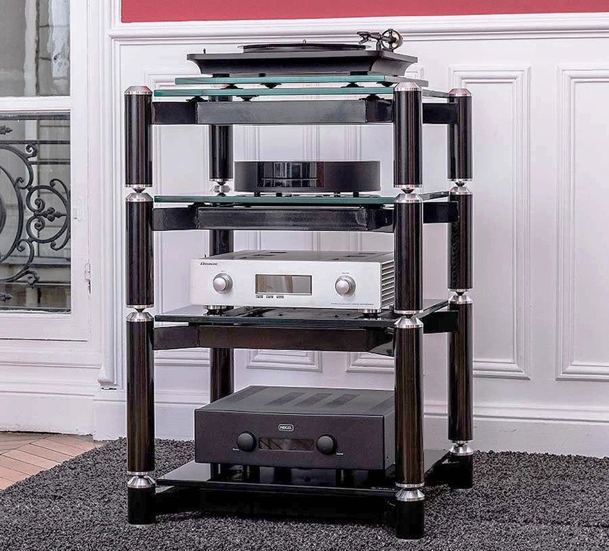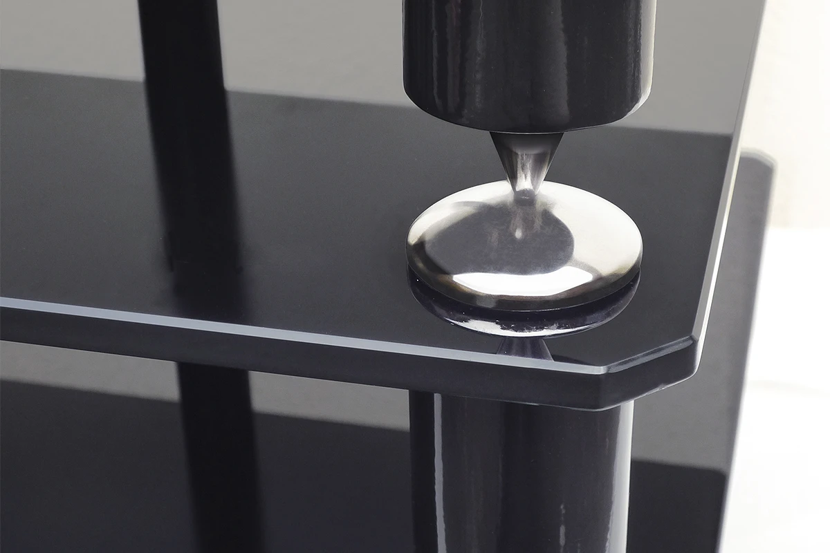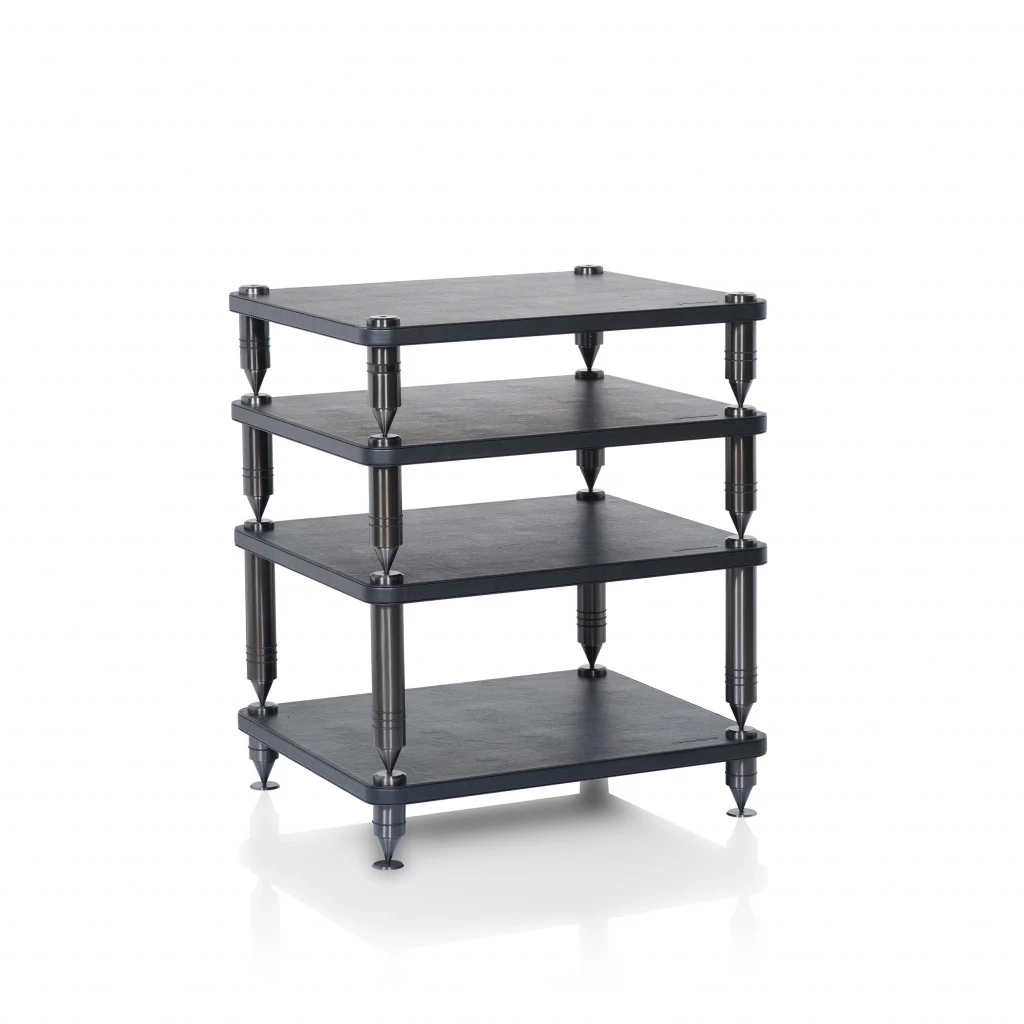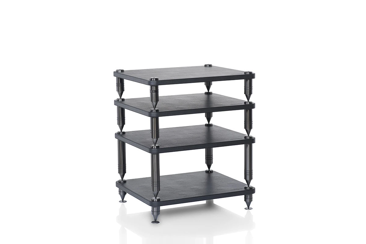 Na jejich výrobu byly použity ty nejkvalitnější materiály, přičemž každá police je potažena luxusní černou kůží a nohy jsou vyrobeny z masivních trubek z nerezové oceli, opatřených na spodním konci hrotem, který zapadá do misky na horní straně police a slouží k velmi účinnému utlumení vibrací. Tato řada představuje ideální řešení pro vylepšení a optimalizaci vlastností vašich přístrojů a splňuje tak požadavky i těch nejnáročnějších audiofilů a milovníků hudby.