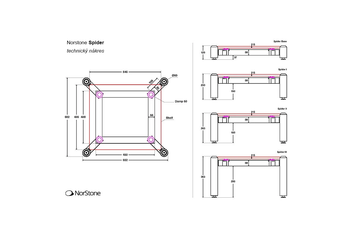 Model Spider je klíčovou součástí každé Hi-Fi sestavy a je navržen tak, aby izoloval jednotlivé komponenty od vibrací. V současné době se jedná, pokud jde o tlumení vibrací, o nejlépe fungující Hi-Fi regál značky Nortsone.