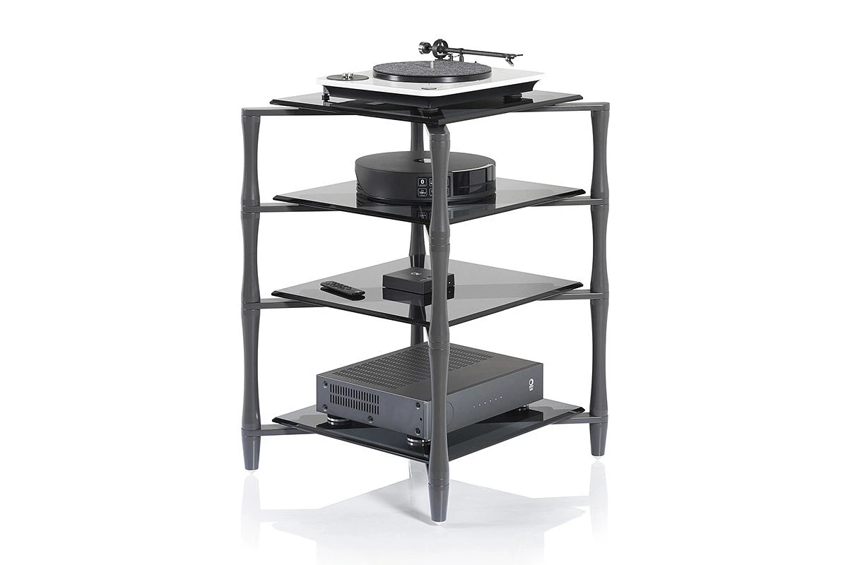 Regál SLENDER splňuje všechny požadavky odborníků i audiofilů. Každá z polic z šedého kouřového skla je opřena absorpční PVC lištou, která byla speciálně vyvinuta pro tento model.