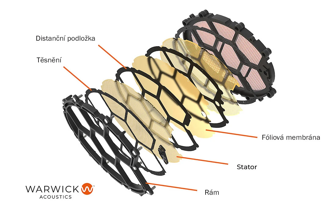 - Měnič: Balanced-Drive High Precision Electrostatic Laminate (BD-HPEL), se dvěma statory