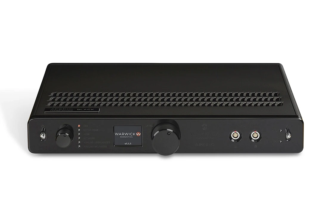 Zesilovač sluchátek Aperio nabízí následující funkce: plnohodnotný předzesilovač s linkovým výstupem, digitálně-analogový převodník (DAC) a sluchátkový zesilovač včetně "budiče" polarizačního napětí.